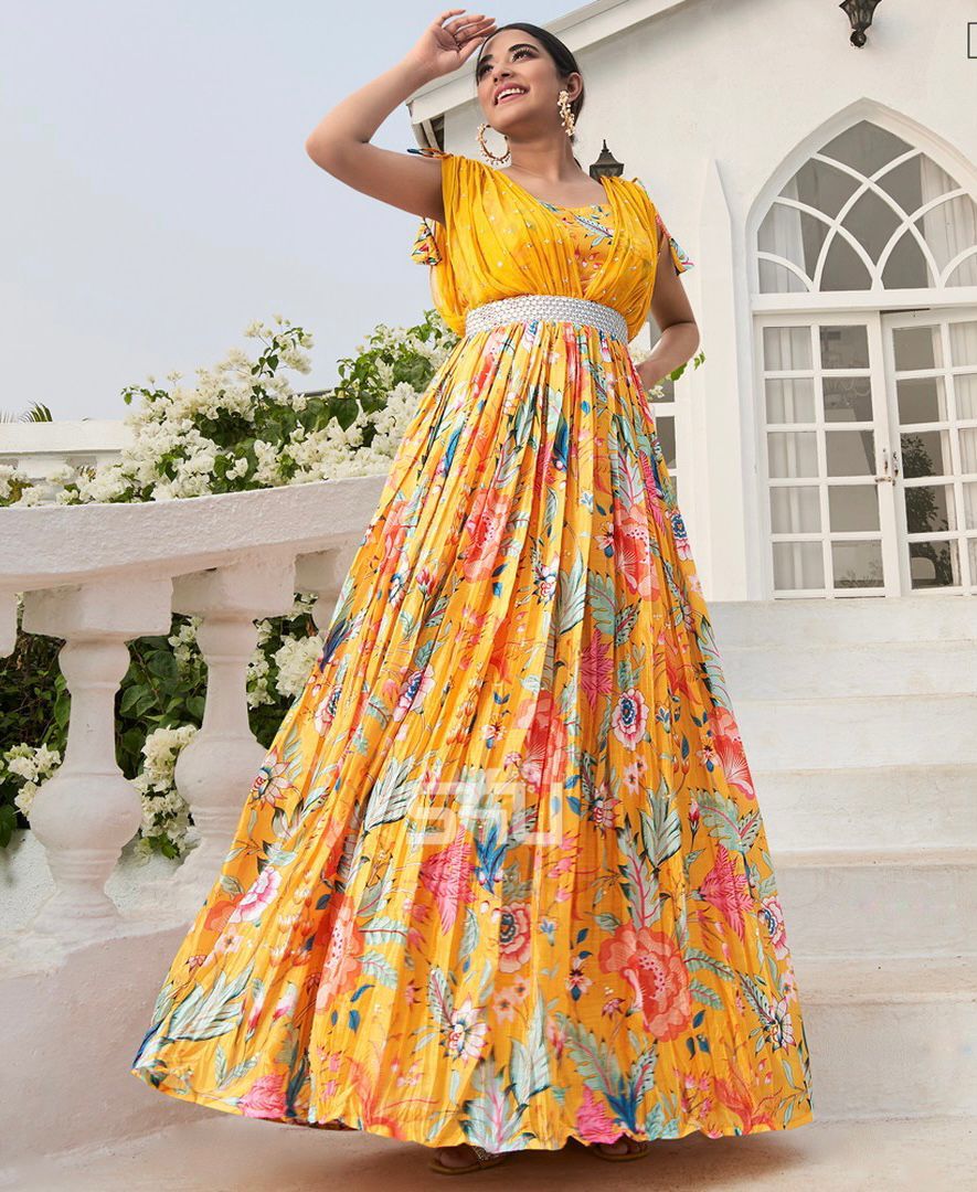 Bollywood Designer Party Wear Look Gown With Digital Print Work