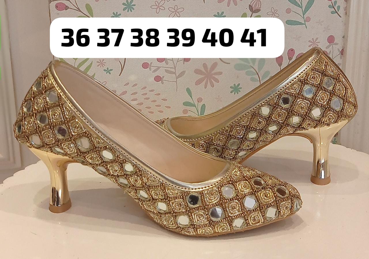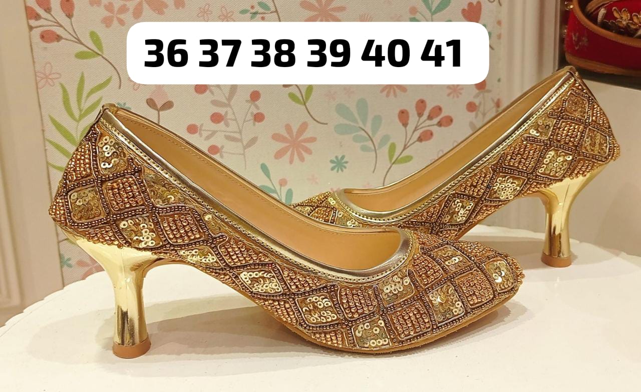 Bollywood Designer Pencil Heels with Beaded, Mirror and Sequence Work