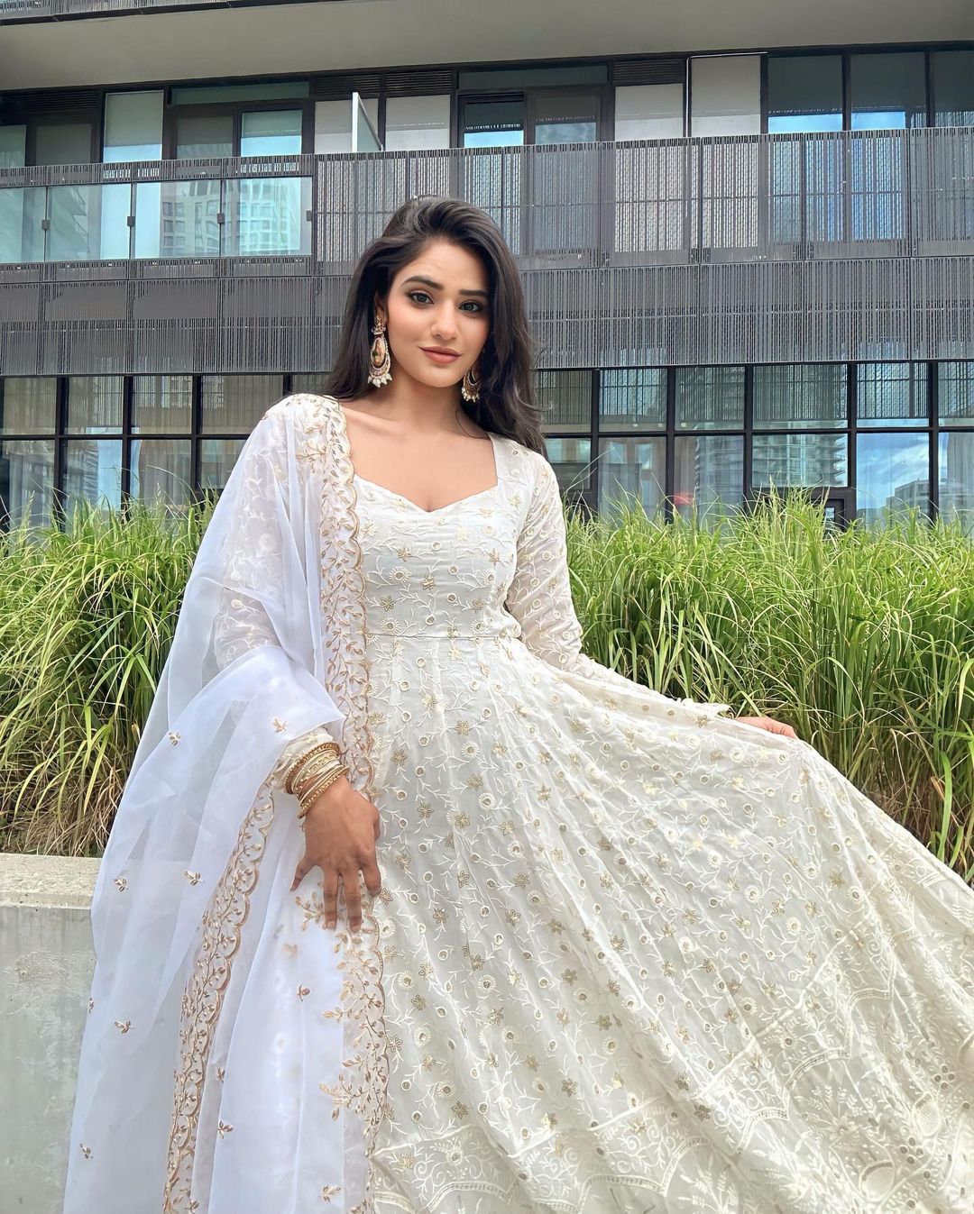 Designer Gown Mirror Work with Embroidery Sequence Thread Work 2 Piece Set