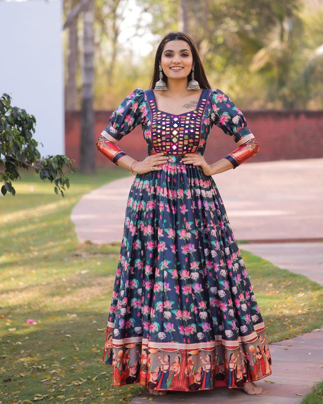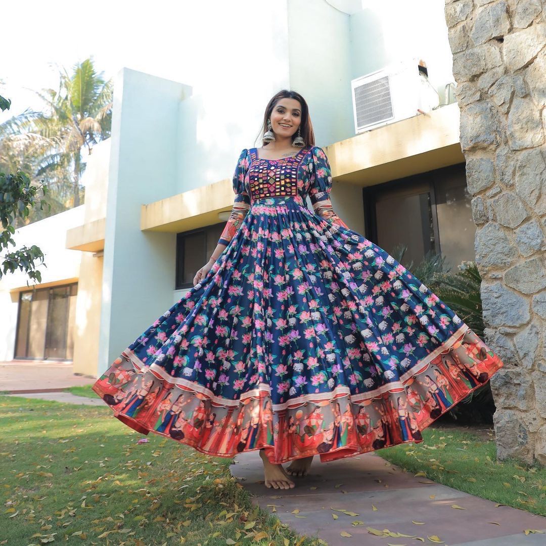 Designer Gowns Heavy Gota Zari and Thread Work with Digital Print