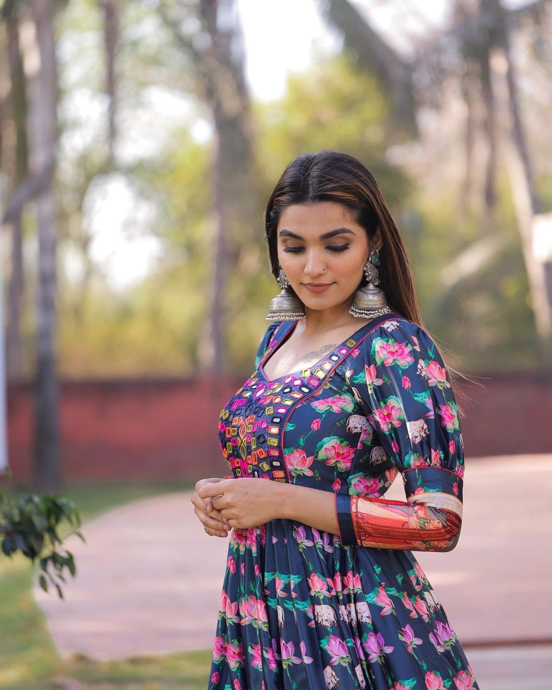 Looking someone for this same color beautiful Designer Gown On heavy Gota Zari fabric and Inner with Digital Print and Thread work.
