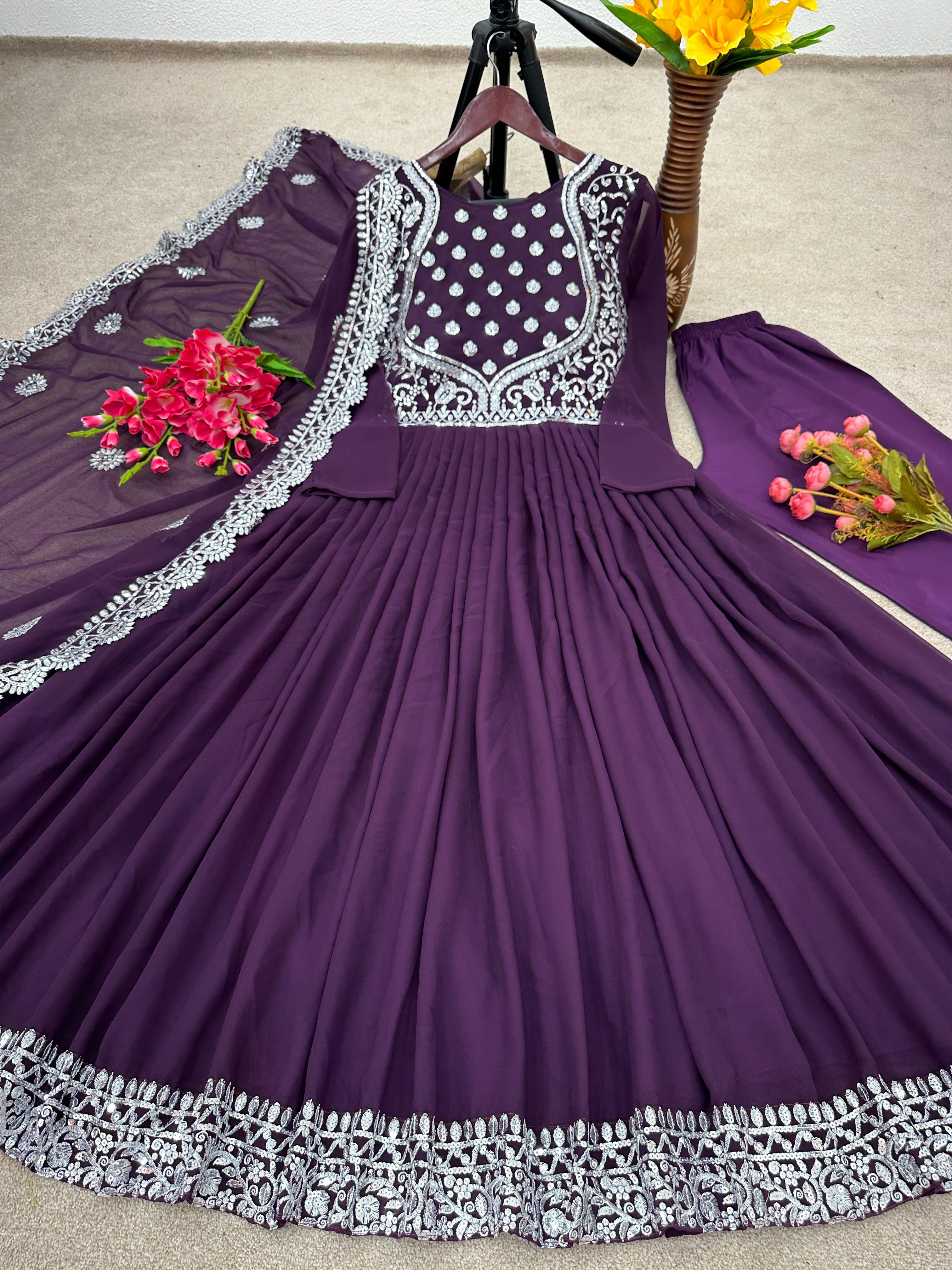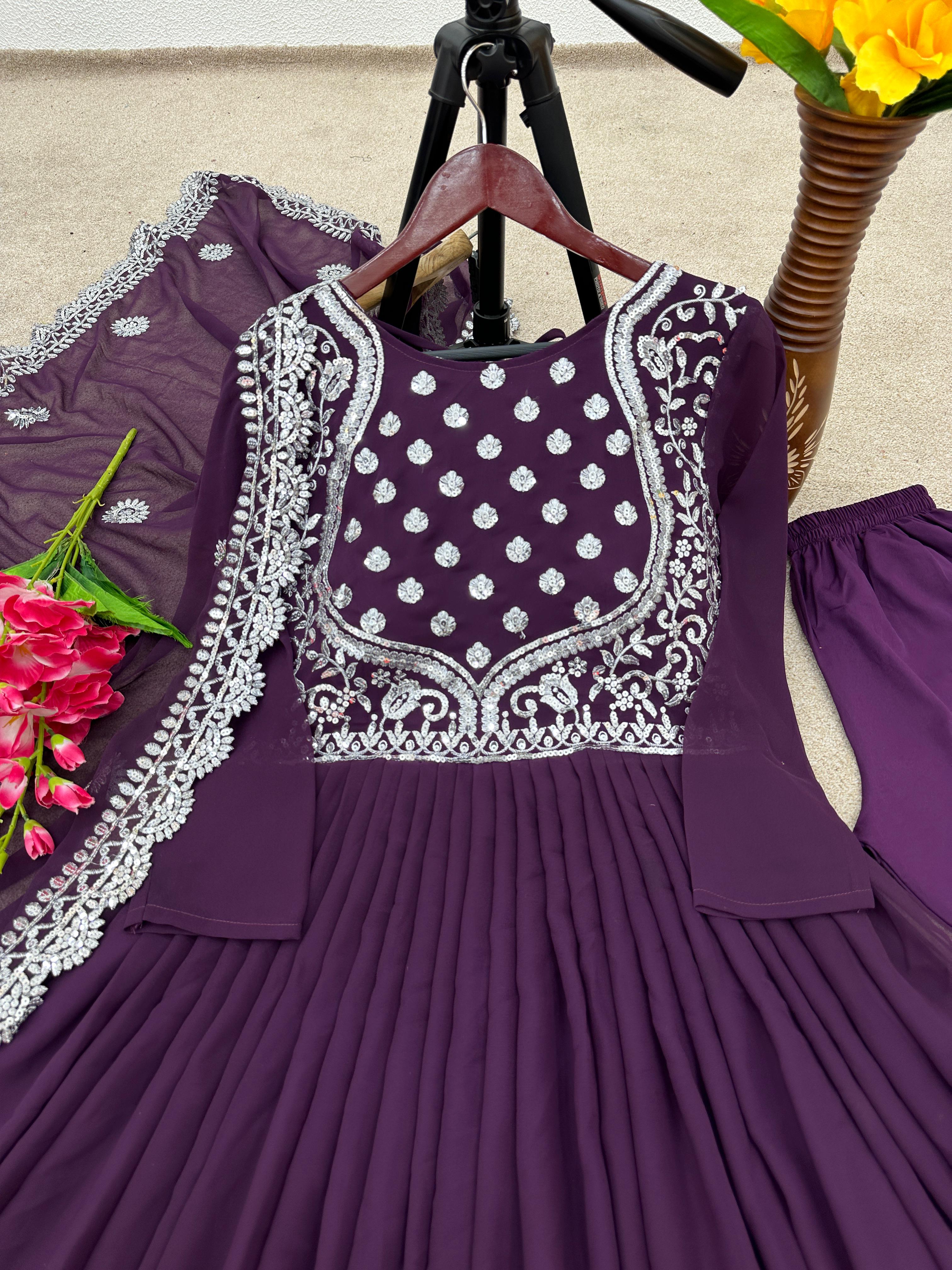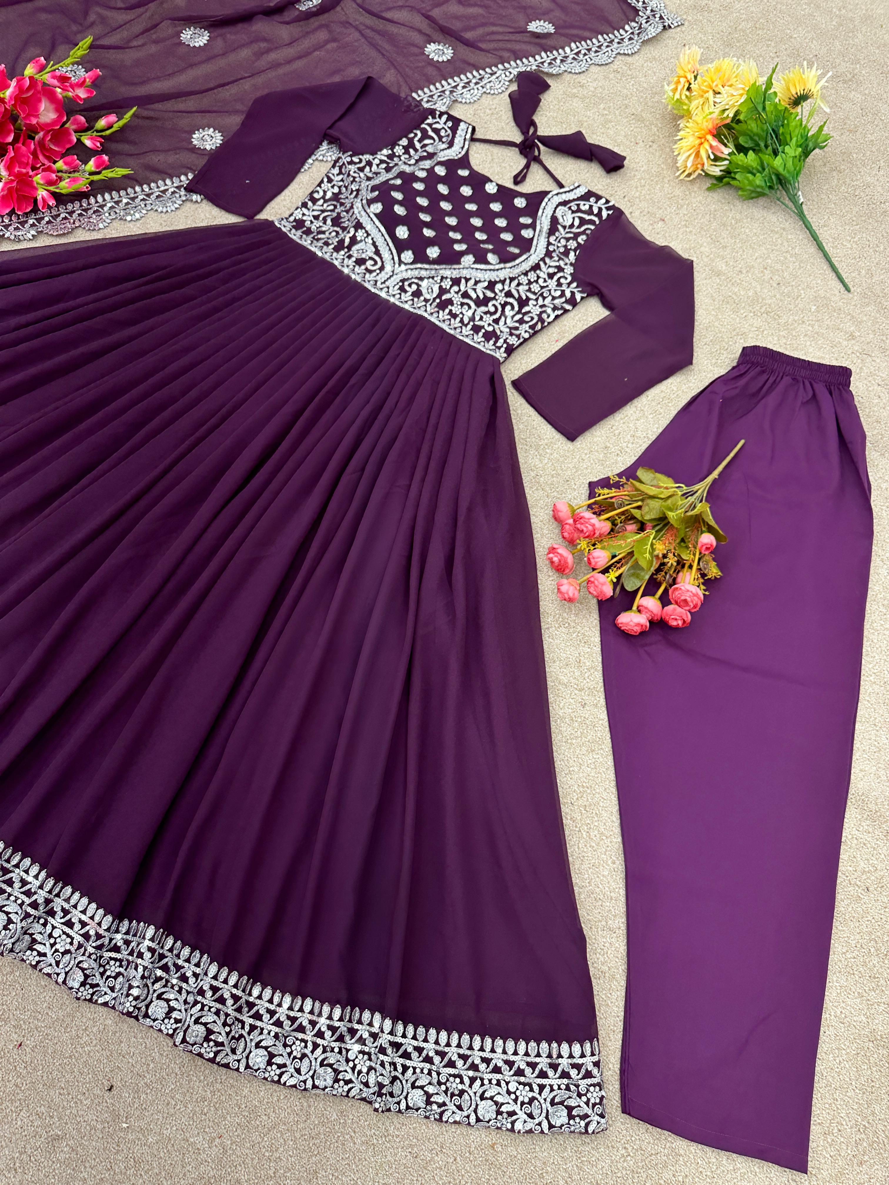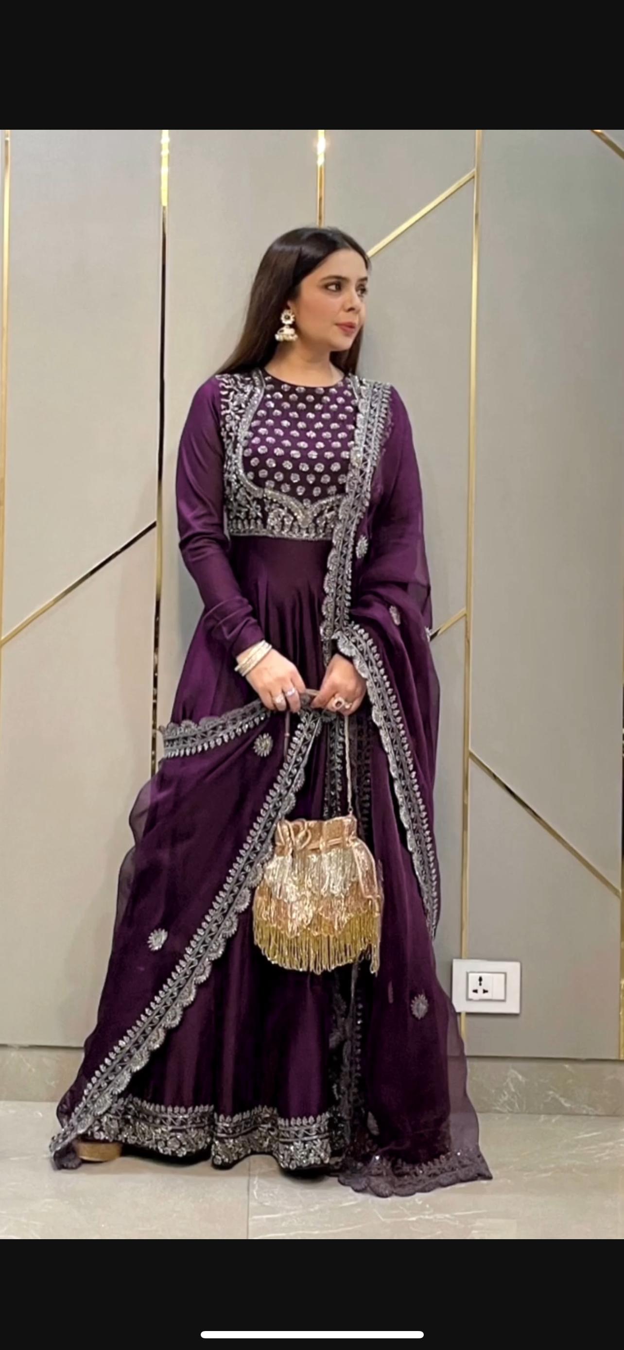 Gown Fabric :Faux Georgette With Heavy 5mm Embroidery Sequence Work With Attached Pad with Full Sleeve