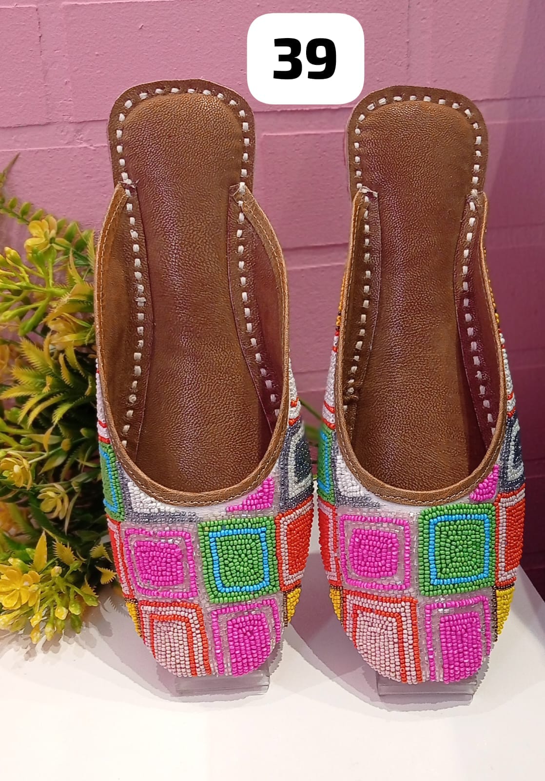 Designer Open Slipper with Mirror, Beaded and Embroidery work