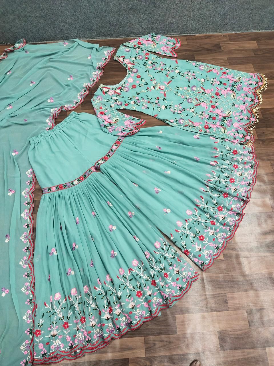 Designer Palazzo Party Wear Embroidery Sequence Work 3 Piece Set