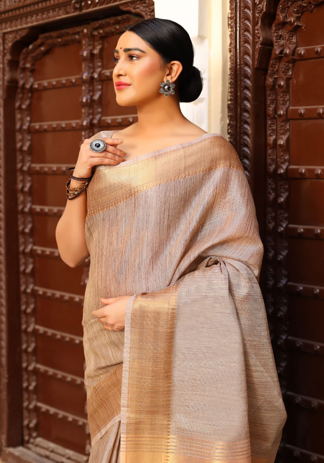 Tissue Linen silk weaving Saree with Blouse Zari Woven Pallu and Zari Woven Border with running