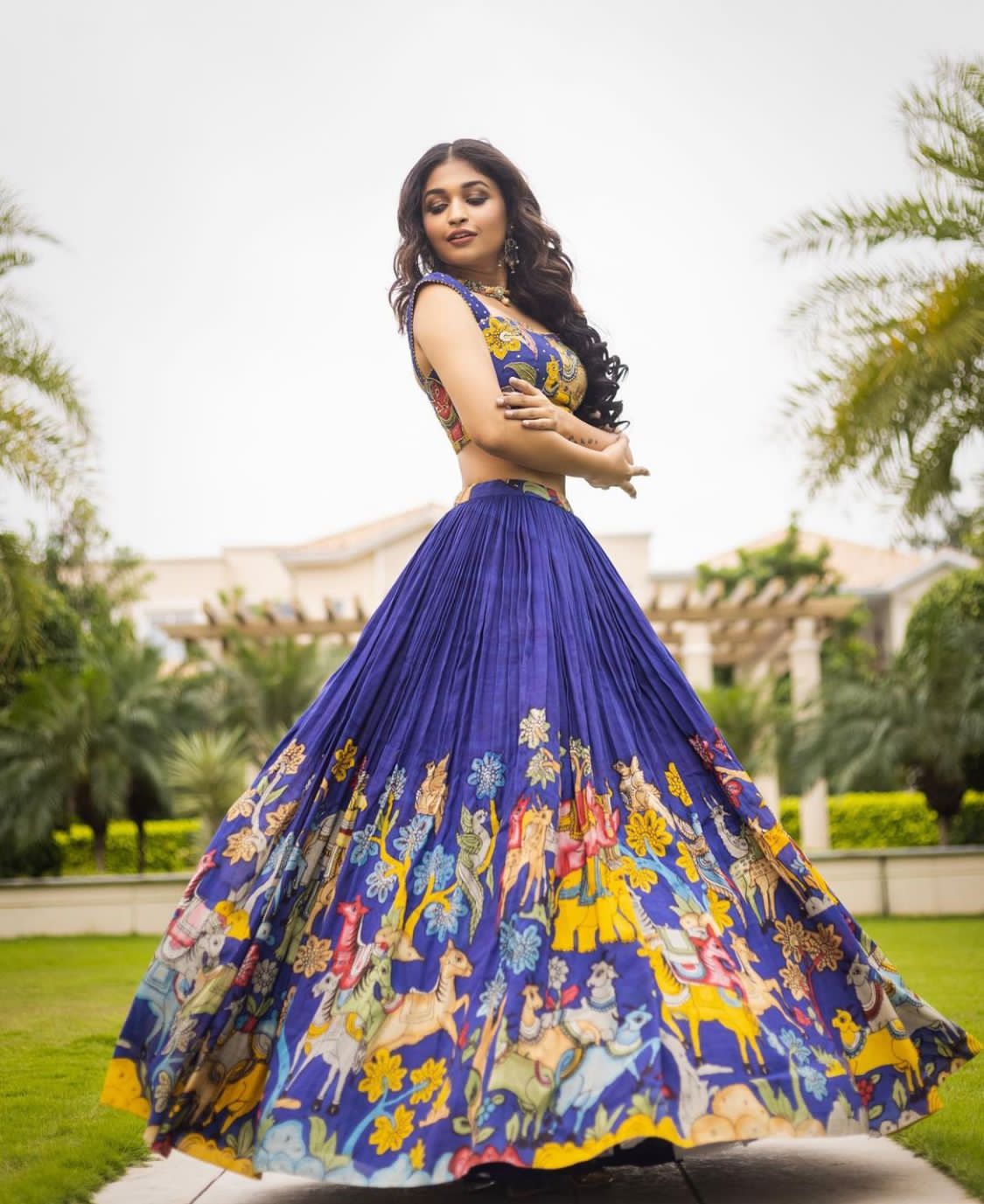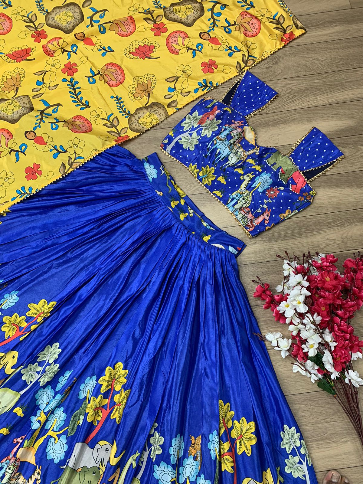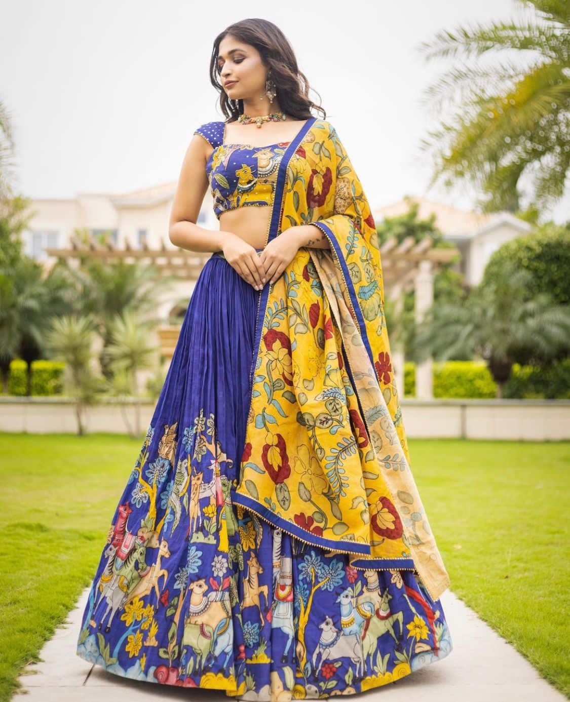 Floral Print Blue Lehenga Choli with Kamal Kari work 3 Piece Set