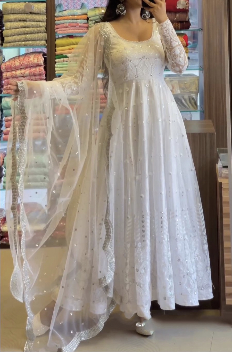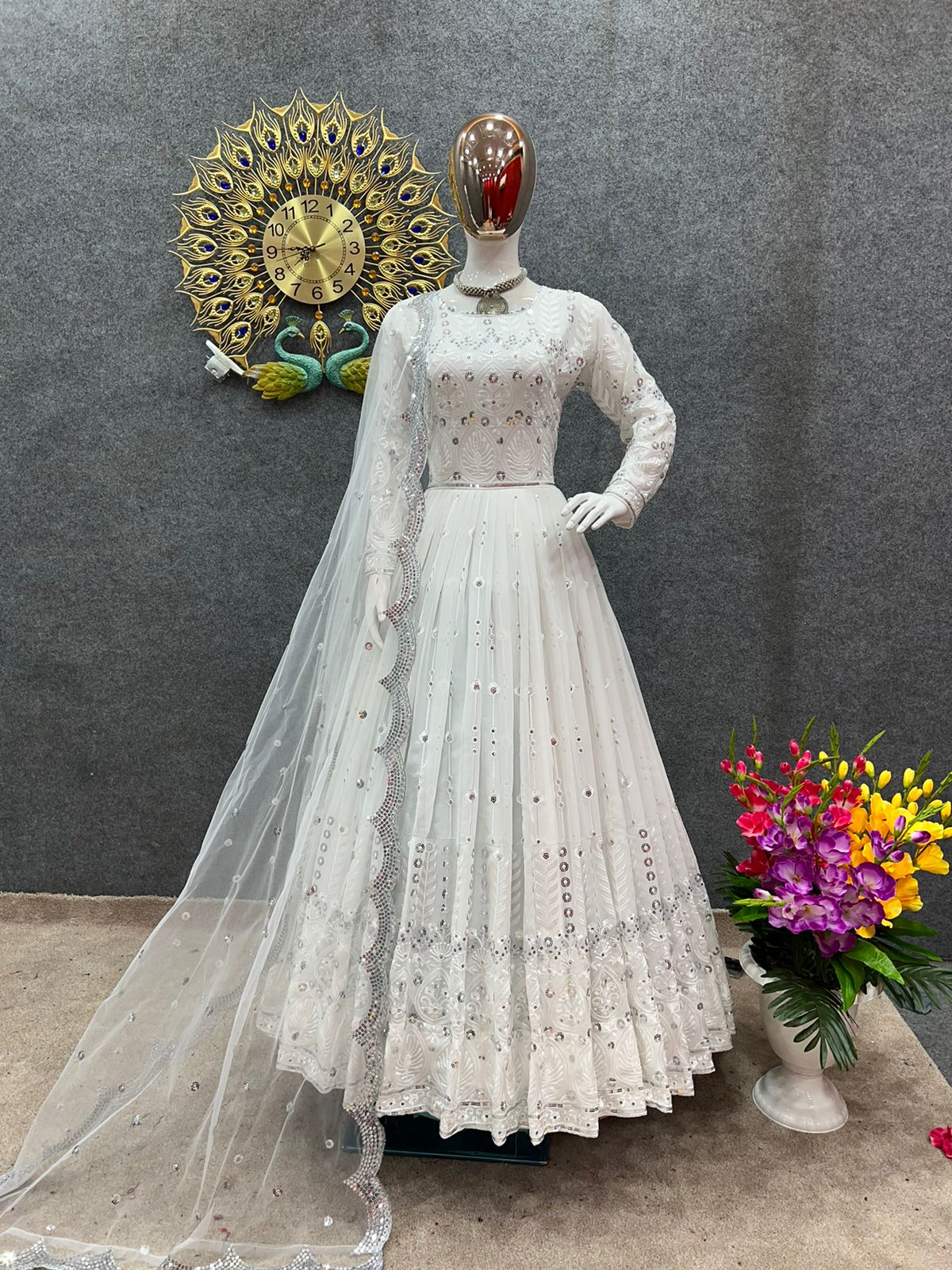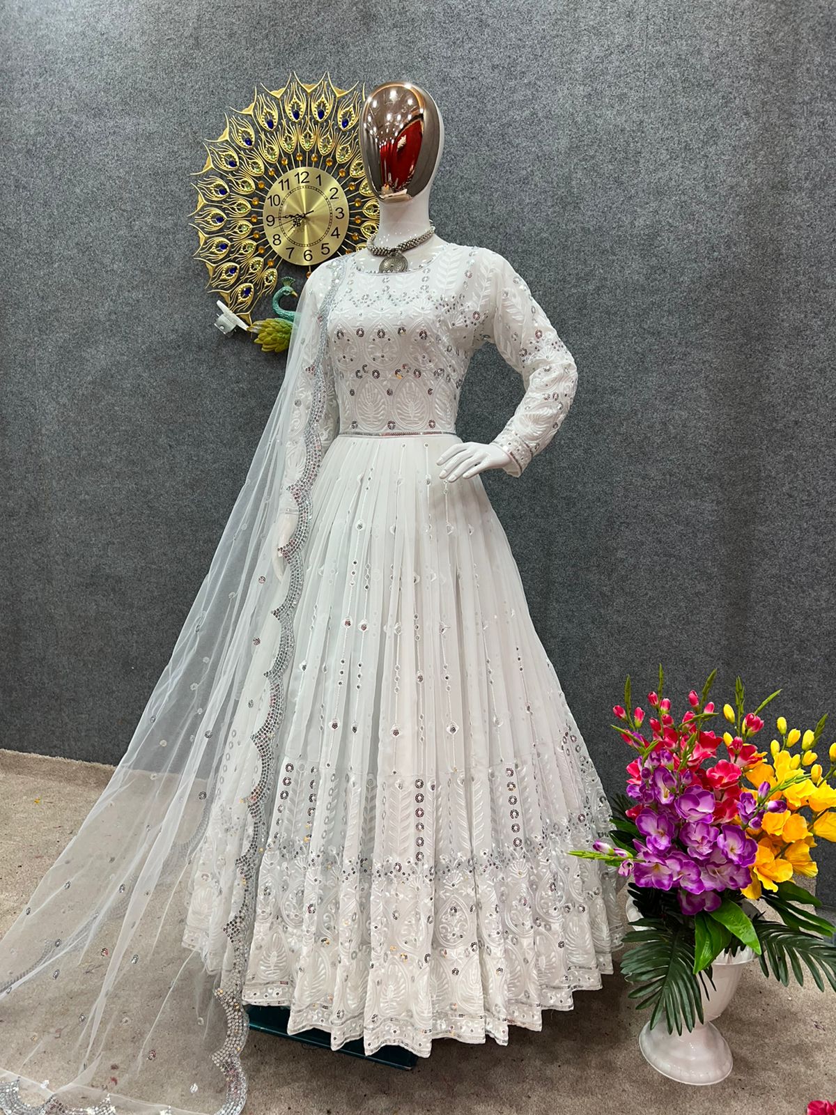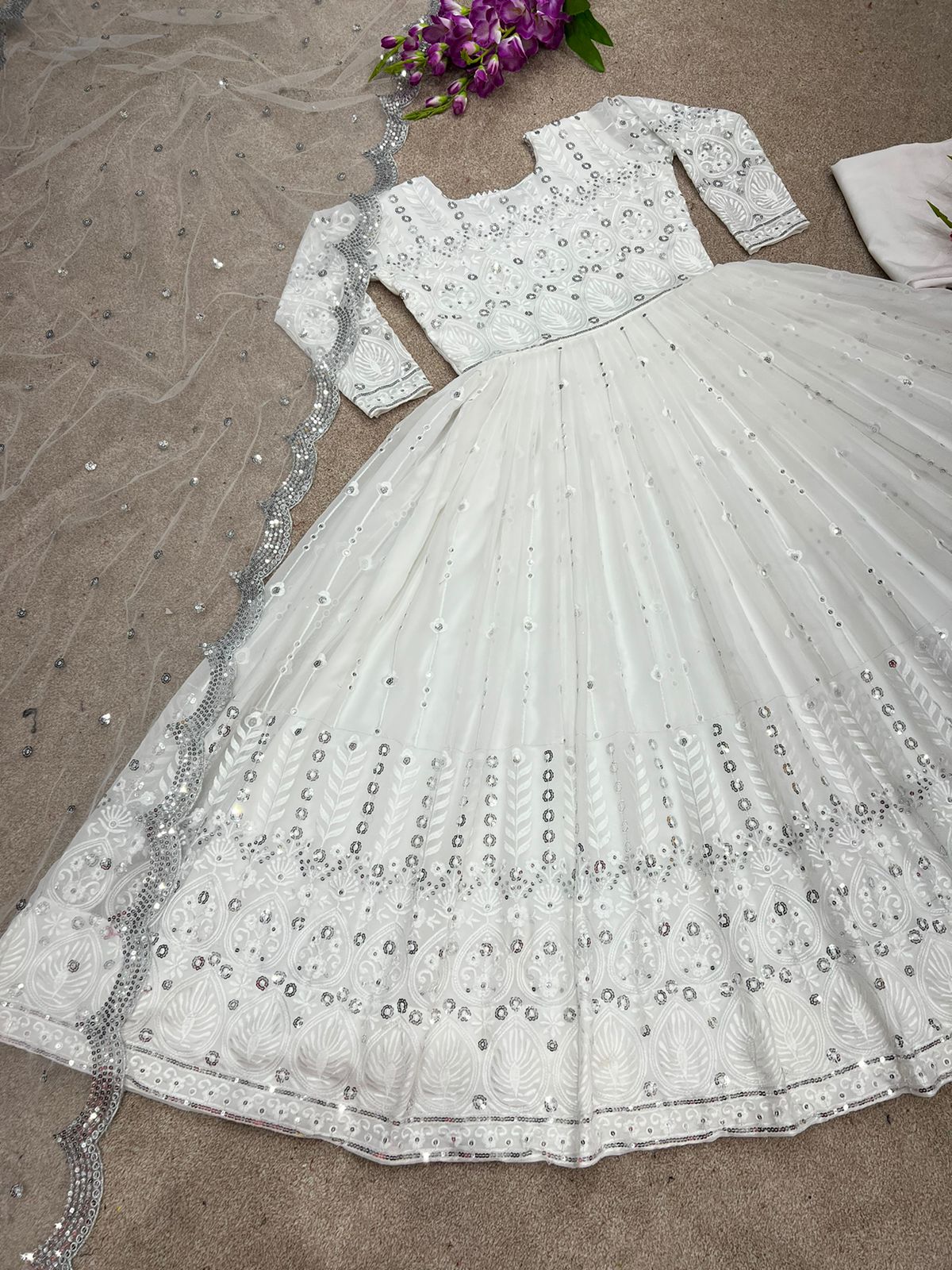 *Gown Fabric* : Faux Georgette With *Heavy Embroidery And 5mm Sequence Work * With Full Sleeve