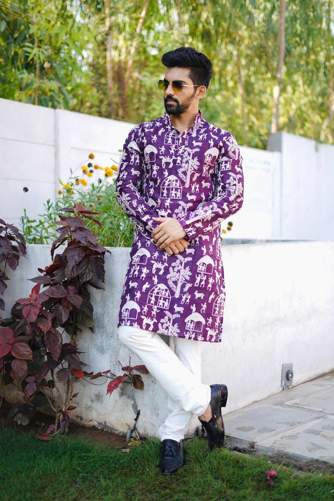 Lucknowi Designer Kurta Pant Soft Silk 2 Piece Set