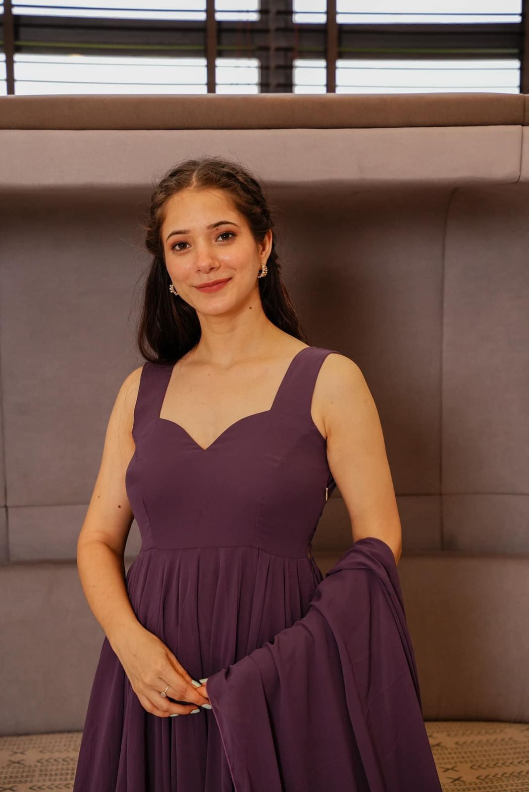 Mauve Solid Fox Georgette Suit with crochet Laces 3 Piece Set