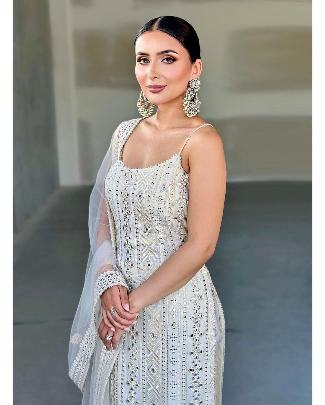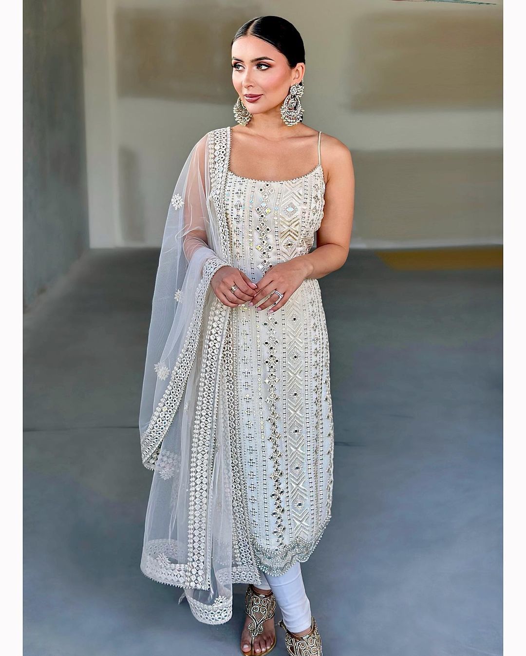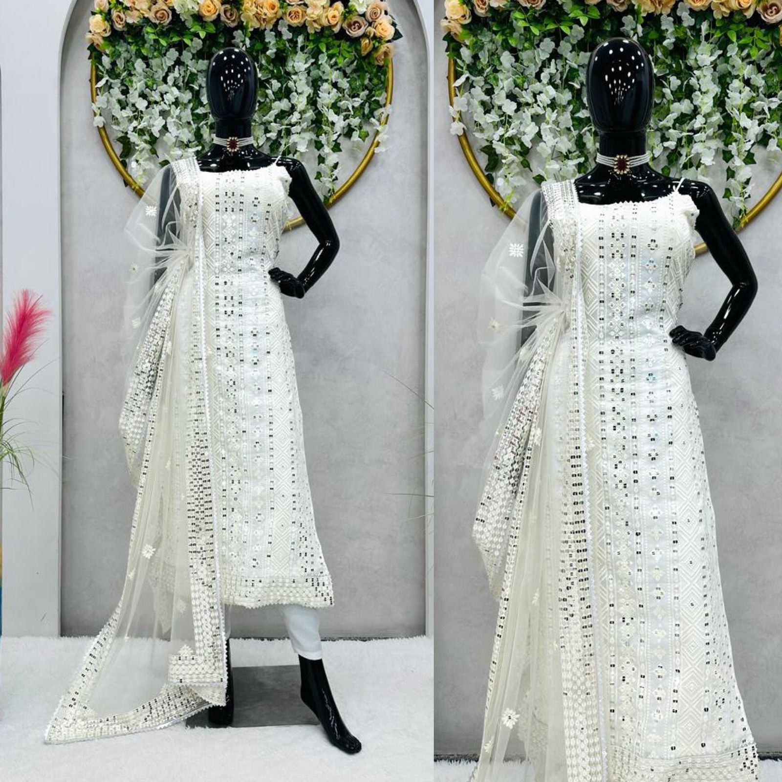 Indo Western Mirror Design Kurti Embroidery Sequence Work 3 Piece Set