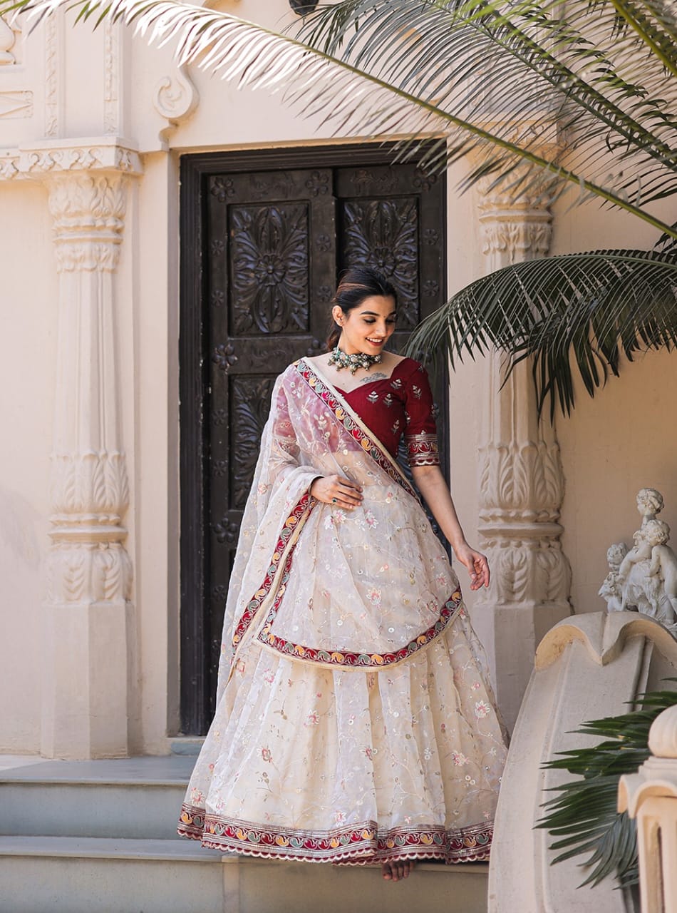 Organza Lehenga Choli Decorated with Trendy Embroidery Sequence 3 Piece Set