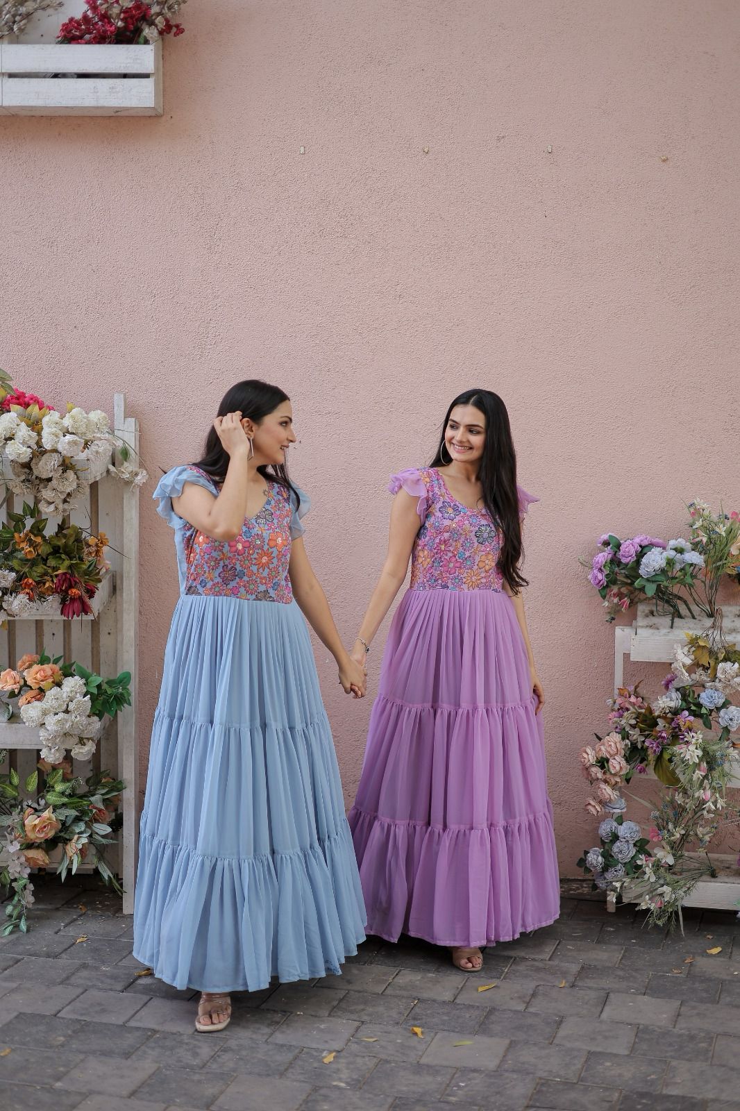 Premium Designer Gown Faux Georgette With Rich Floral Print work