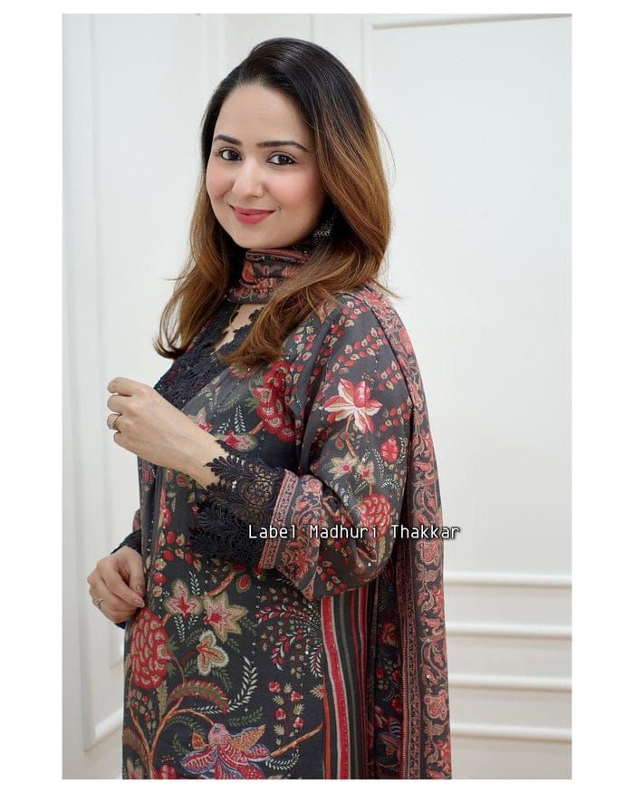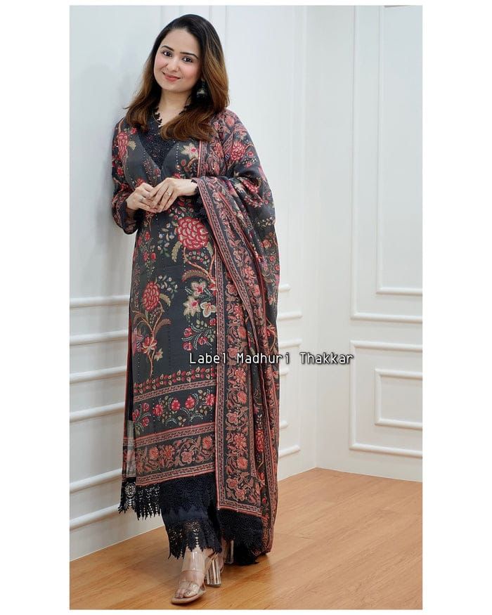 Punjabi Suit Decorated with digital prints, Sequence Embroidery and lace Work 3 Piece Set