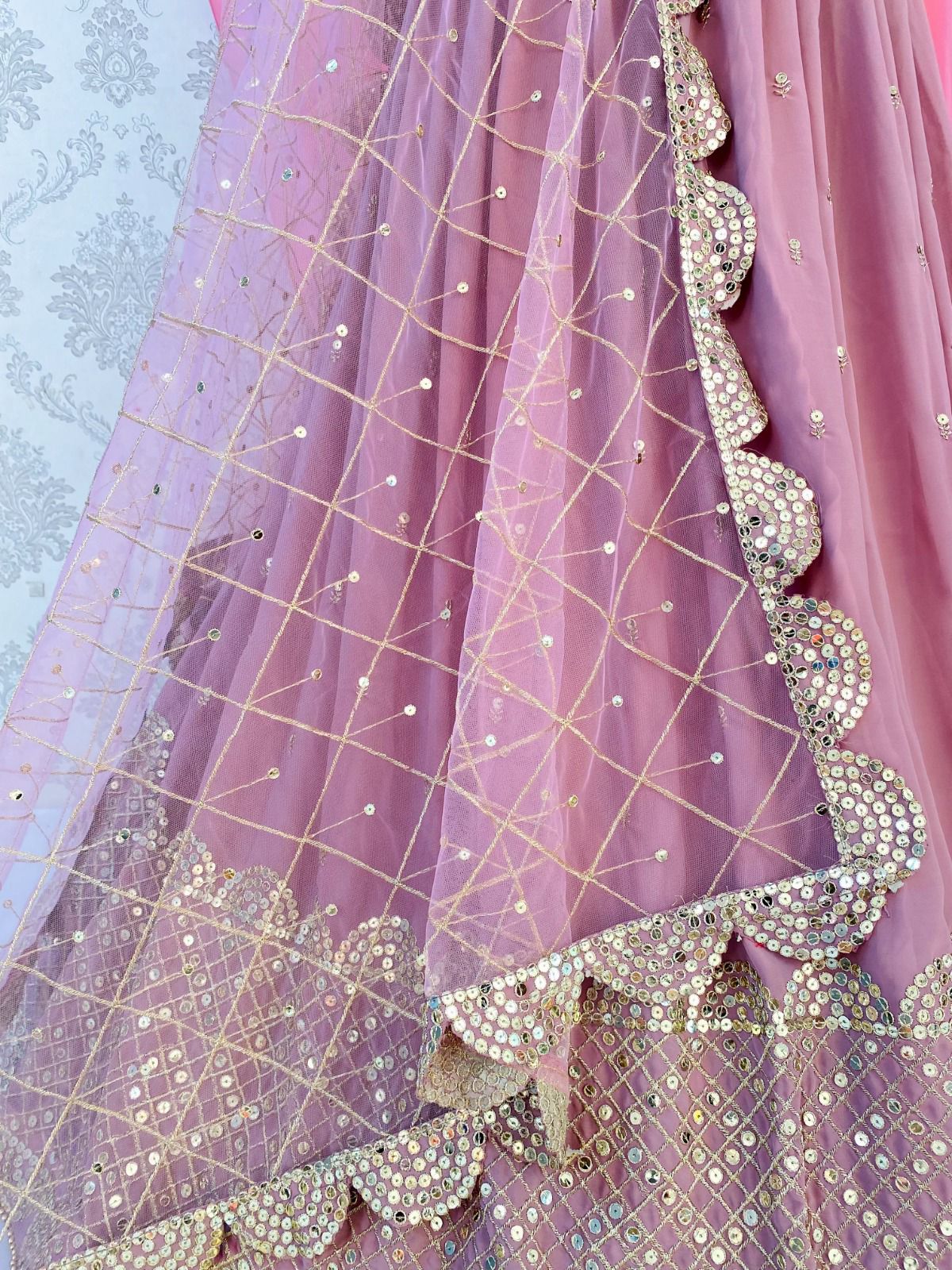 Heavy ONION PINK Floral Printed Georgette Wedding Wear Lehenga Choli