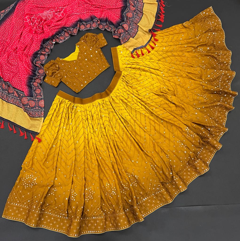 Lehenga Color:-YELLOW PERING